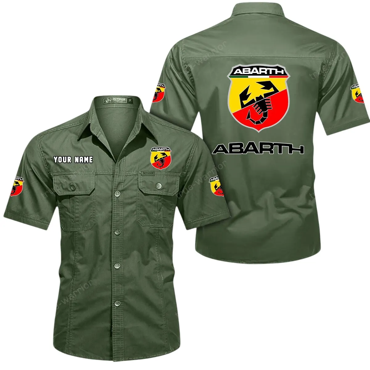 Abarth Short Sleeved Shirt, All Over Print Button Shirt CAR444052625866 – Army Green