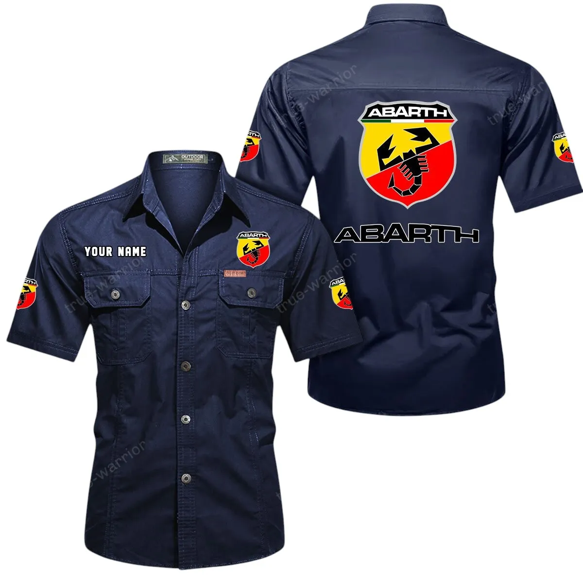 Abarth Short Sleeved Shirt, All Over Print Button Shirt CAR444052625866 – Dark Blue