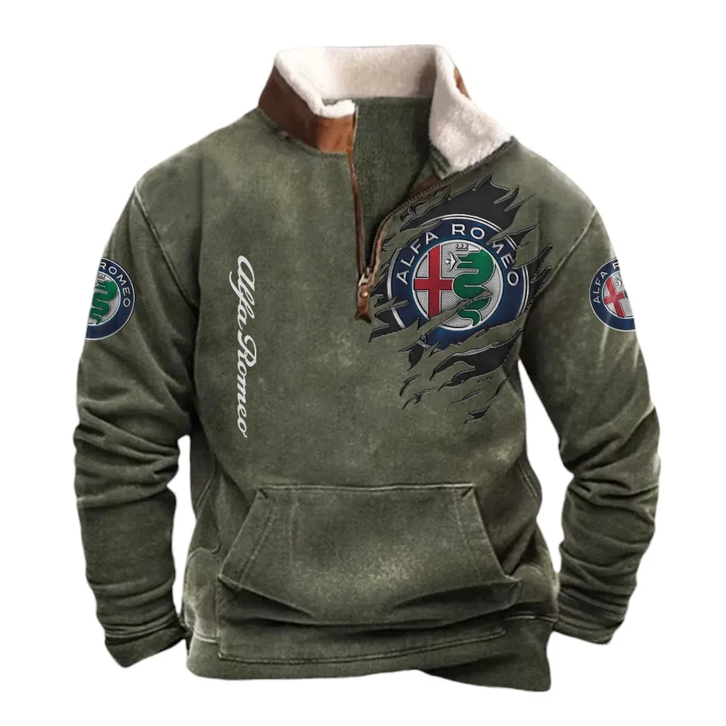 Alfa Romeo Half Zip Fur Collar Hoodie CAR0926092071, All Over Print Half Zip Fur Collar Hoodie