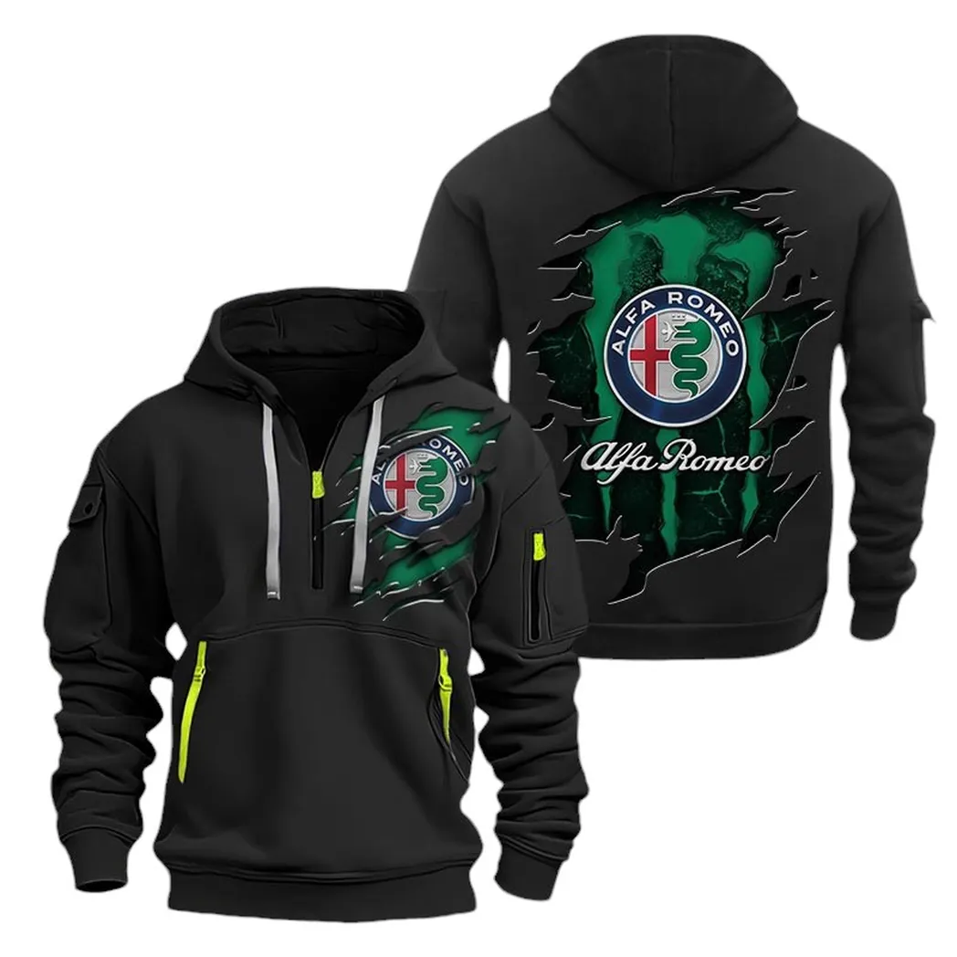 Alfa Romeo Hoodie Half Zipper CAR8010152080, All Over Print Hoodie Half Zipper
