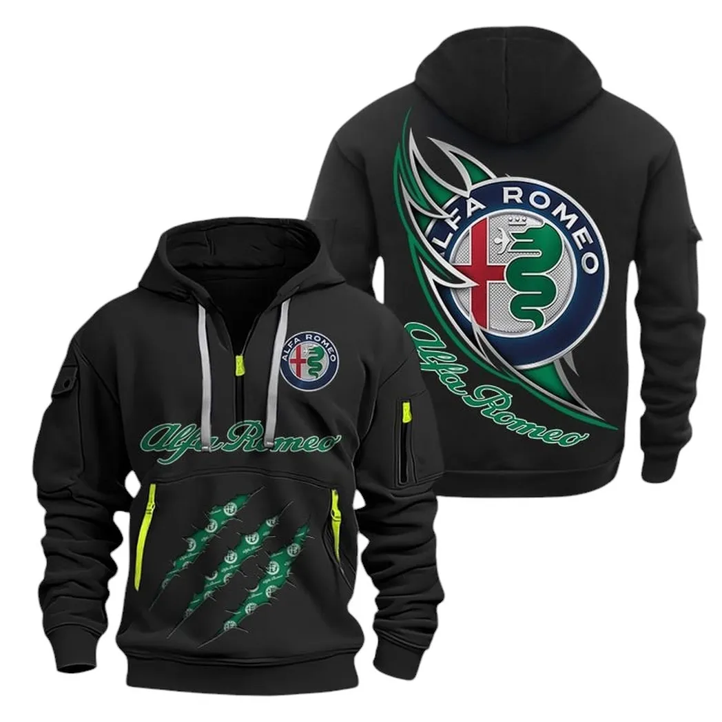 Alfa Romeo Hoodie Half Zipper CAR1371092079, All Over Print Hoodie Half Zipper