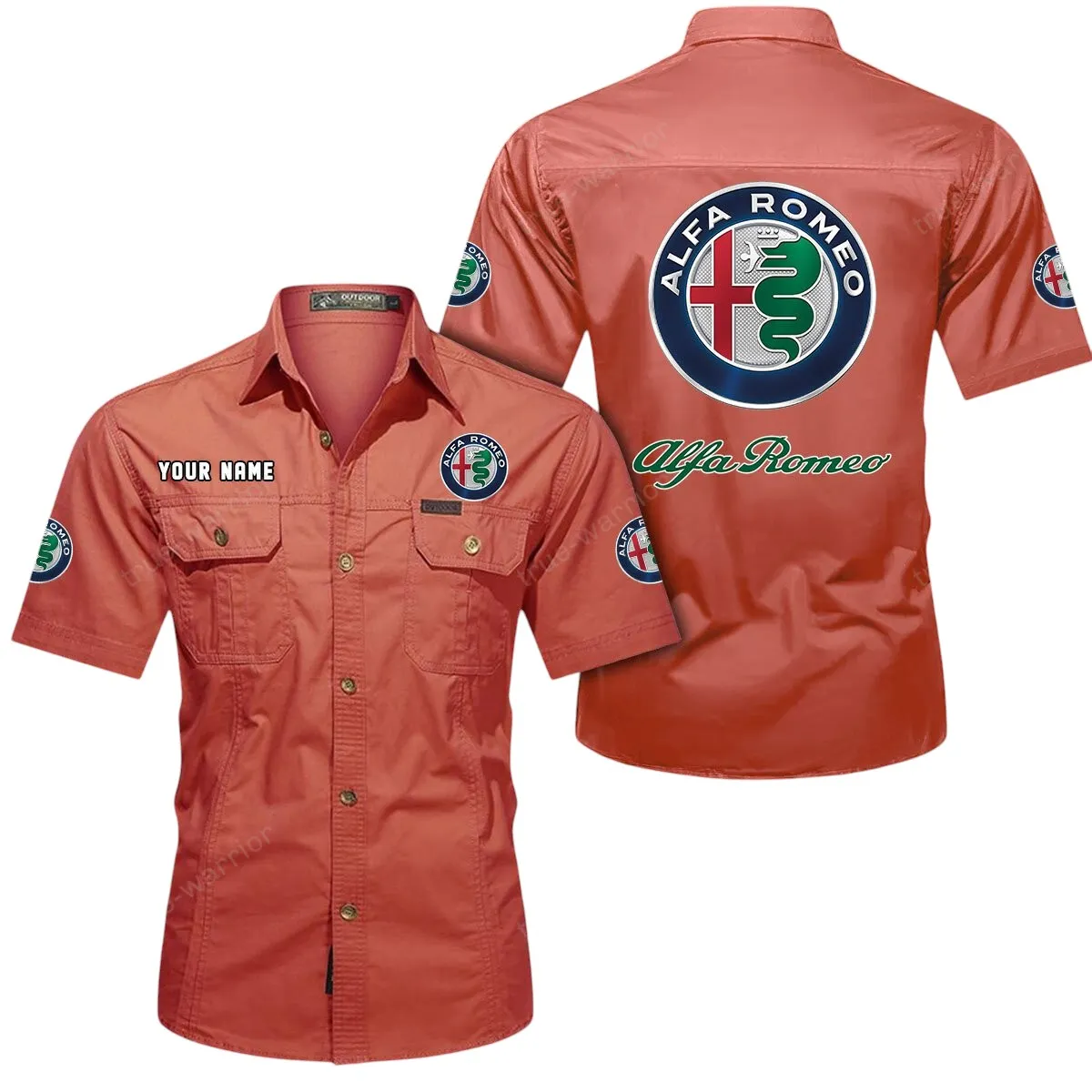 Alfa Romeo Short Sleeved Shirt, All Over Print Button Shirt CAR444052625827 - Khaki