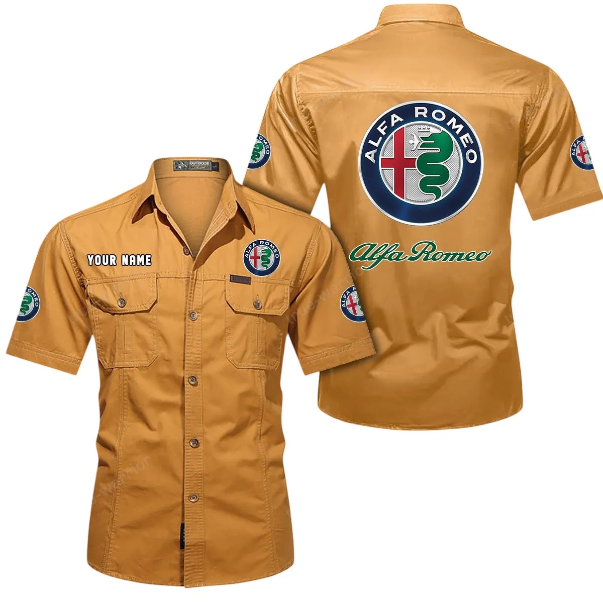 Alfa Romeo Short Sleeved Shirt, All Over Print Button Shirt CAR444052625827 - Khaki