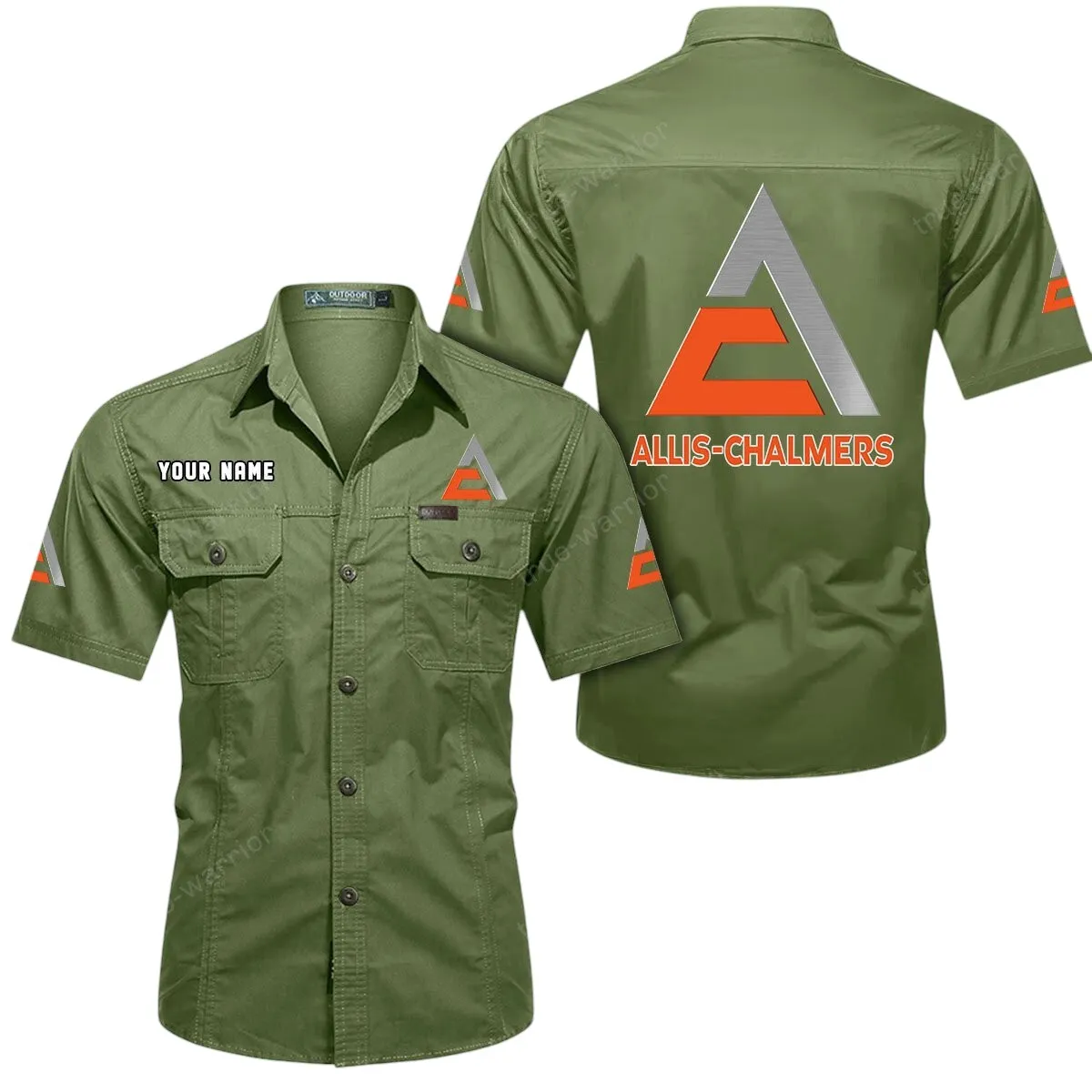 Allis Chalmers Short Sleeved Shirt, All Over Print Button Shirt CAR444052625957 - Army Green