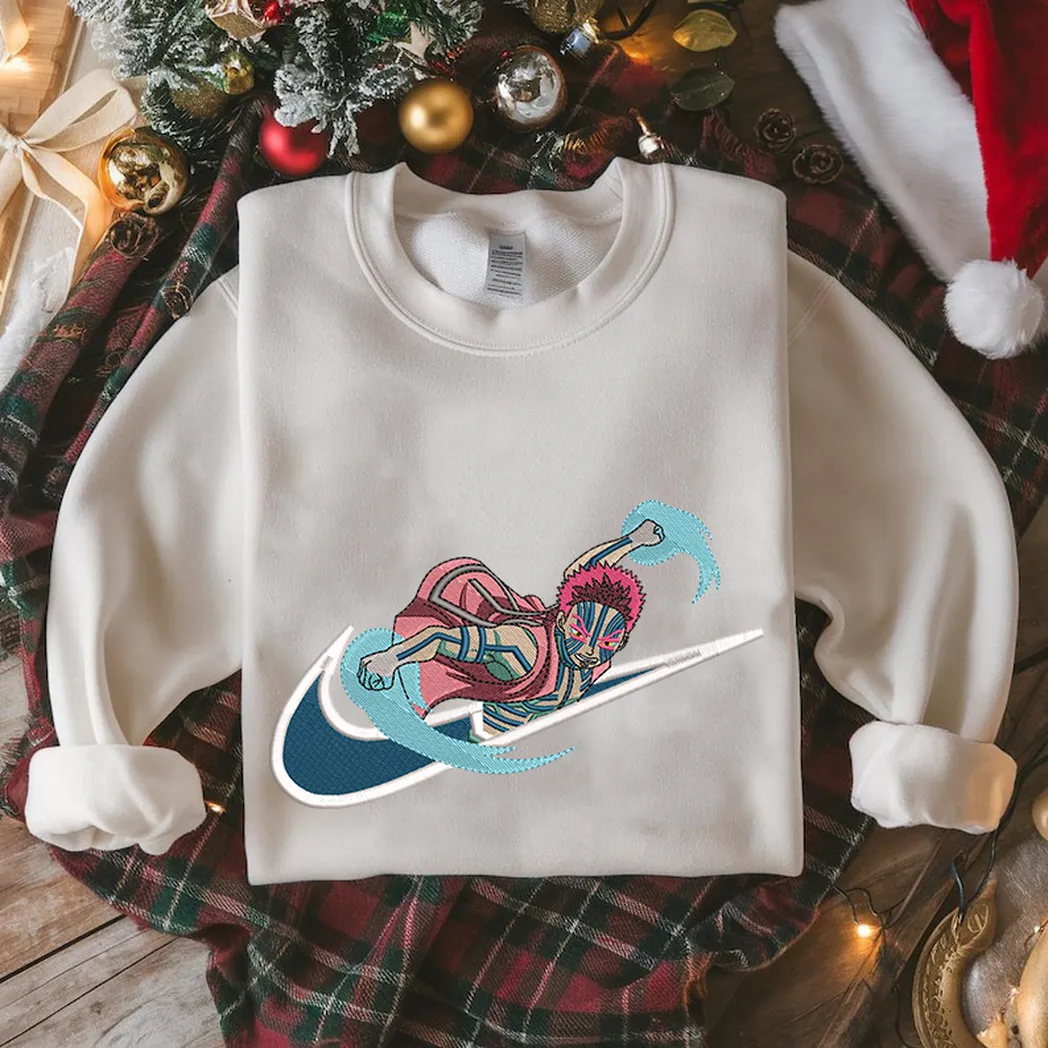 Art Akaza Demon Slayer Anime x Nike Embroidered Sweatshirt Fashion Style For Couples, Valentines Gift For Him/Her