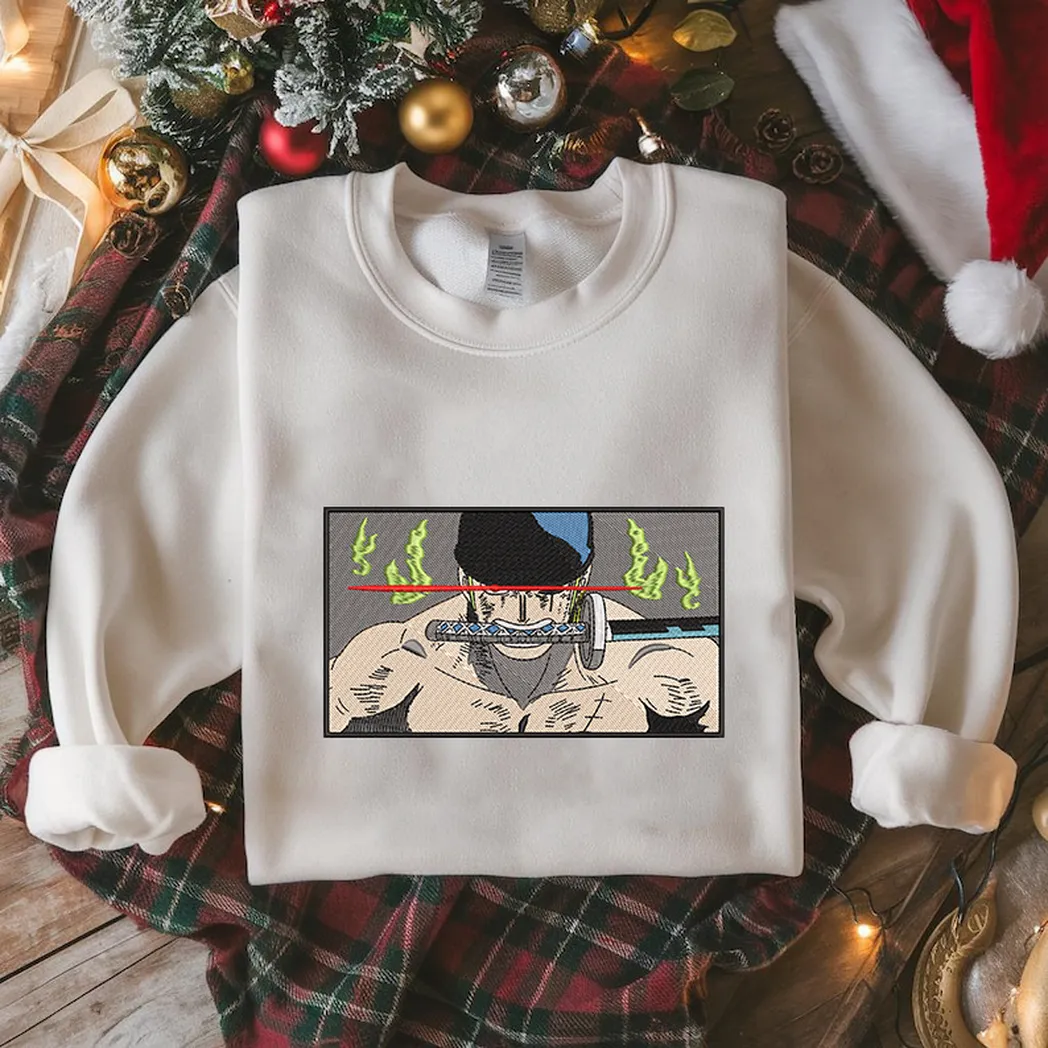 Art Zoro One Piece Anime Embroidered Sweatshirt Fashion Style For Couples, Valentines Gift For Him/Her