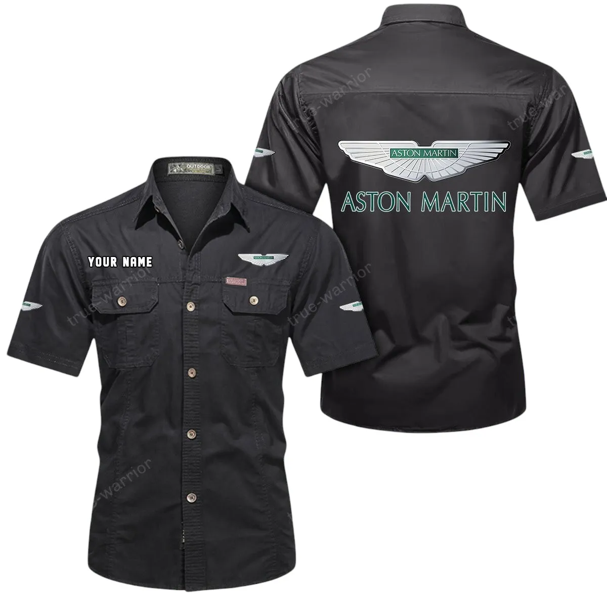 Aston Martin Short Sleeved Shirt, All Over Print Button Shirt CAR444052625906 – Black