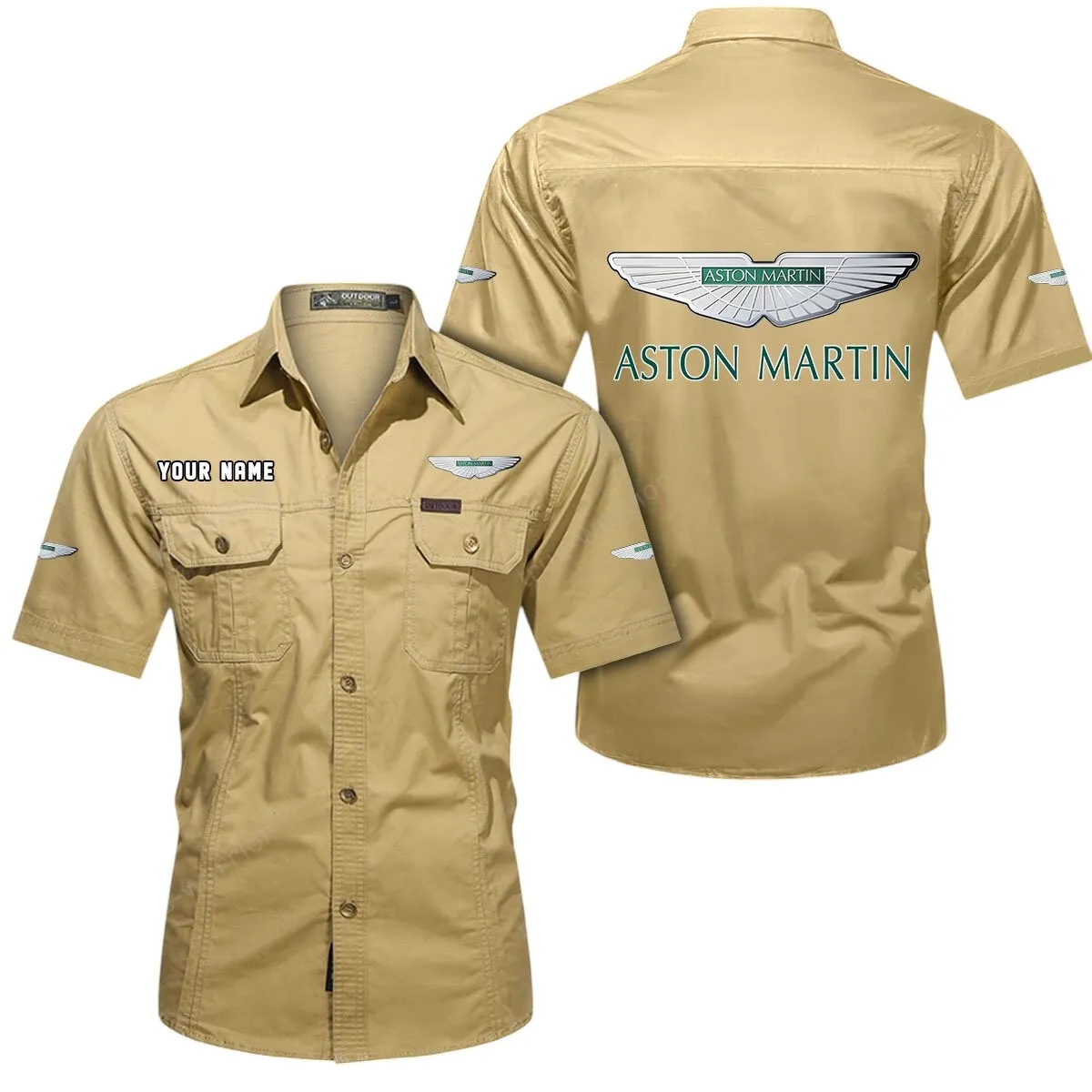 Aston Martin Short Sleeved Shirt, All Over Print Button Shirt CAR444052625906 – Khaki