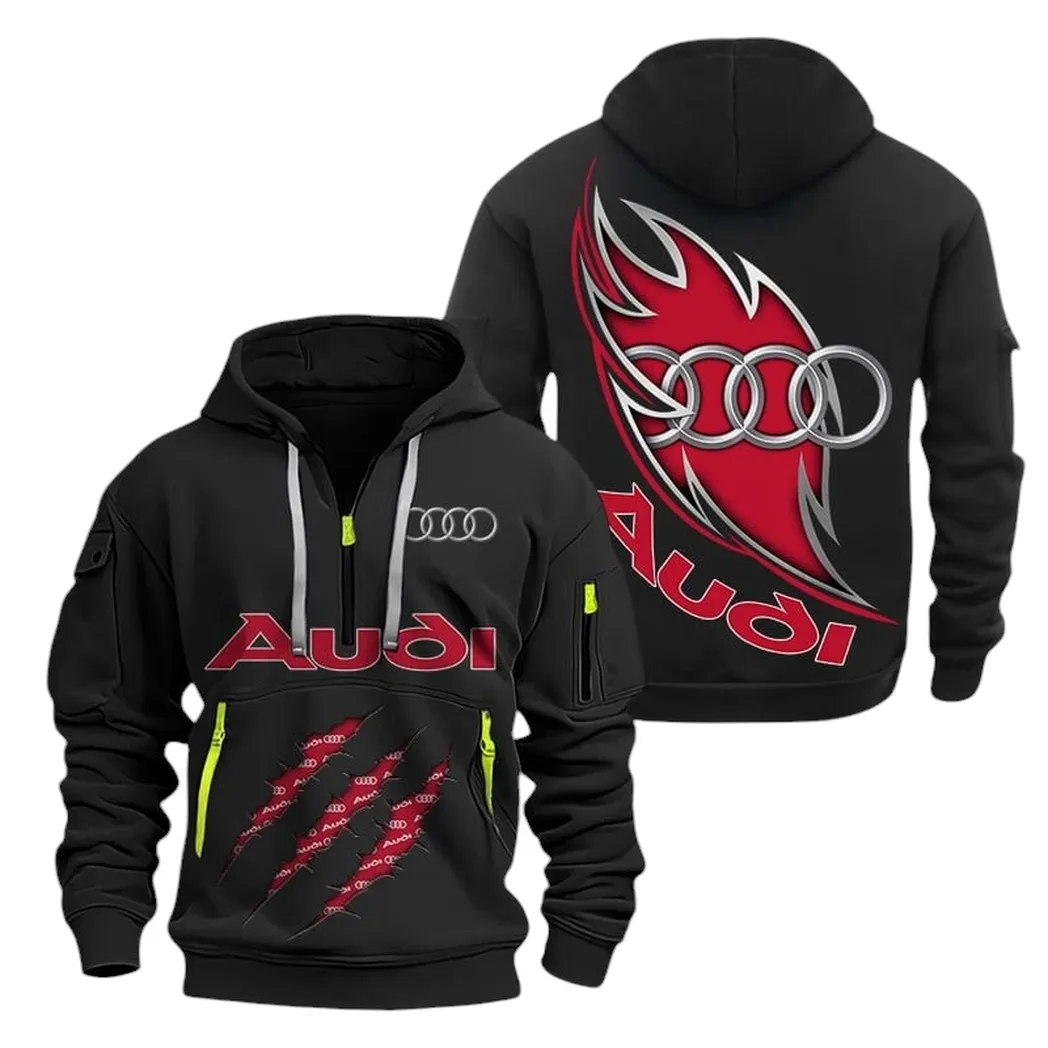 Audi Hoodie Half Zipper CAR1371092024, All Over Print Hoodie Half Zipper