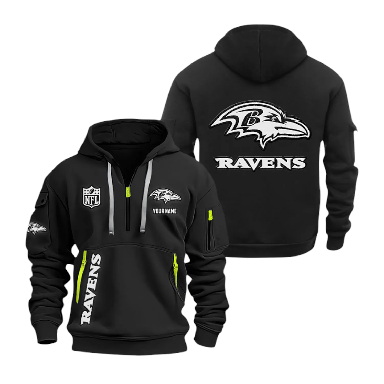 Baltimore Ravens Hoodie Half Zip SKU7510192052, NFL All Over Print Hoodie Half Zip