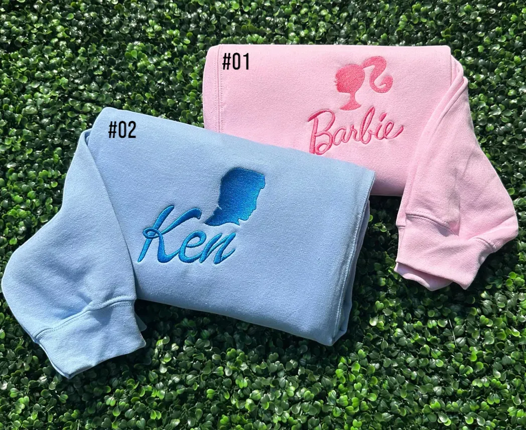 Barbie And Ken Og Couples Embroidery Crewneck Sweatshirt, Maching Embroidered Hoodie For Couple