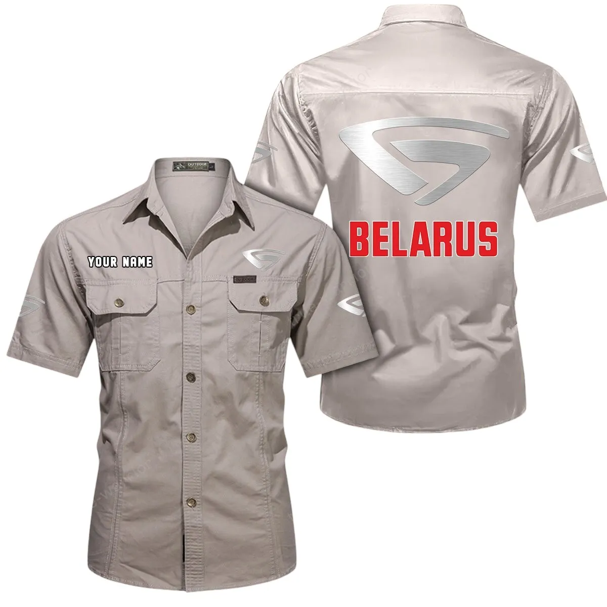 Belarus Short Sleeved Shirt, All Over Print Button Shirt CAR444052625914 – Beige