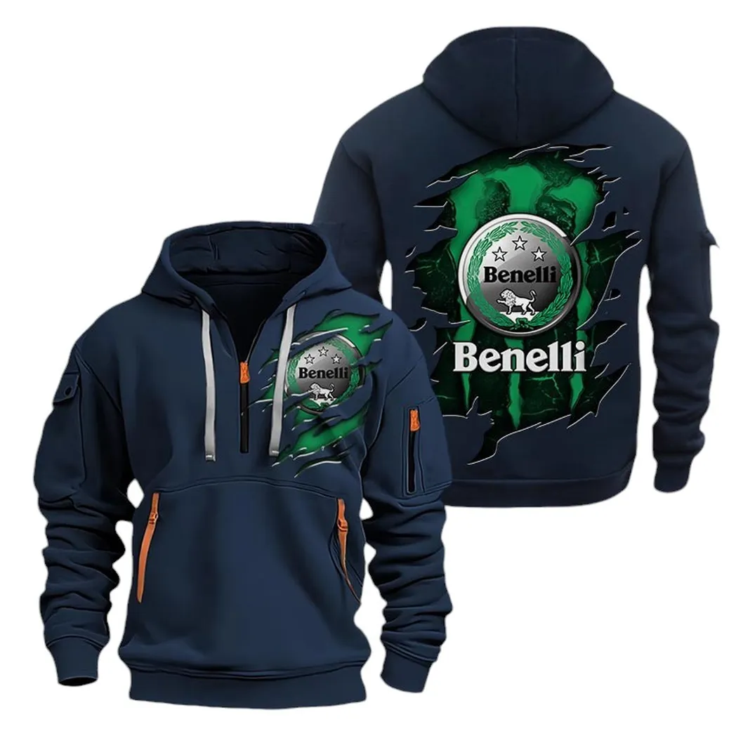 Benelli Hoodie Half Zipper CAR8128092042, All Over Print Hoodie Half Zipper