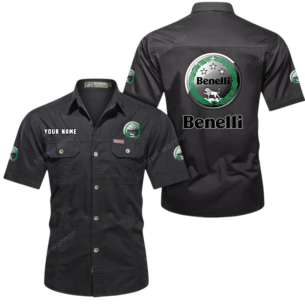 Benelli Motorcycles Short Sleeved Shirt, All Over Print Button Shirt CAR444052625782 - Army Green