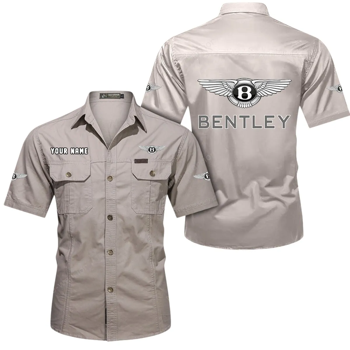 Bentley Short Sleeved Shirt, All Over Print Button Shirt CAR444052625843 – Beige