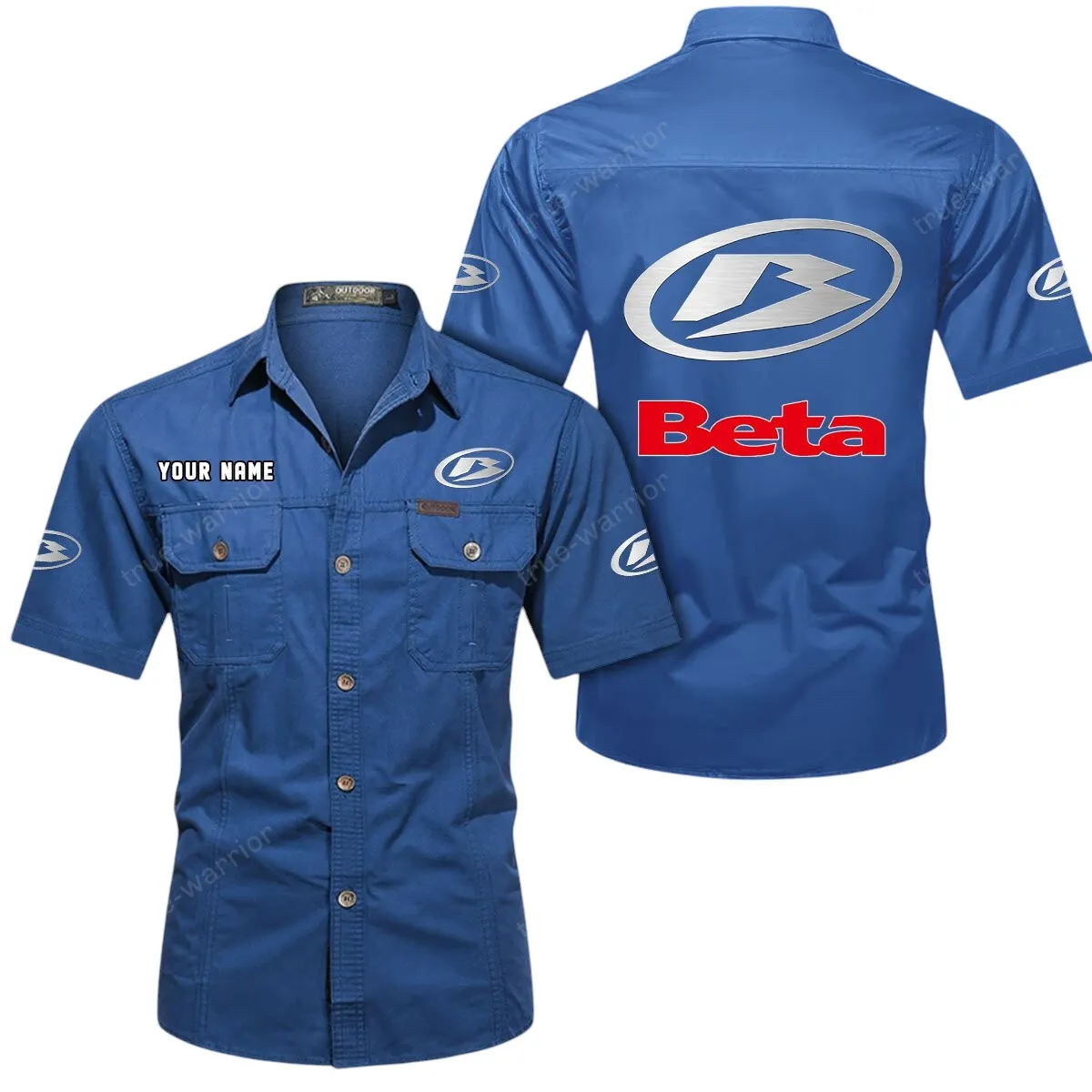 Beta Motorcycles Short Sleeved Shirt, All Over Print Button Shirt CAR444052625791 – Cowboy Blue