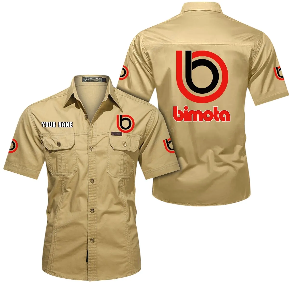 Bimota Motorcycles Short Sleeved Shirt, All Over Print Button Shirt CAR444052625799 - Khaki