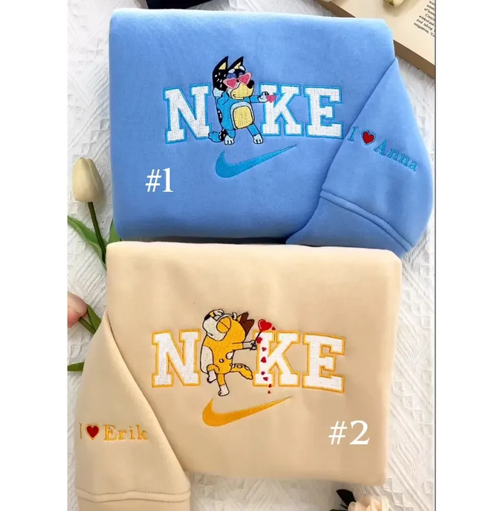Bluey And Bingo Cartoon x Nike Embroidered Sweatshirt Fashion Style For Couples, Valentines Gift For Him/Her