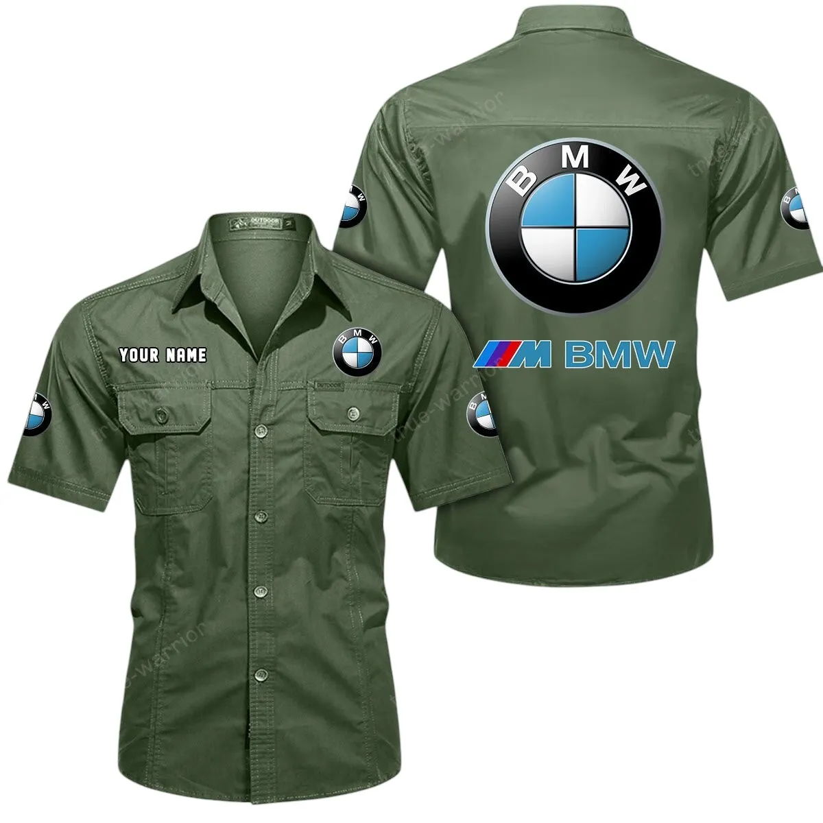 BMW M Car Short Sleeved Shirt, All Over Print Button Shirt CAR444052625820 – Army Green