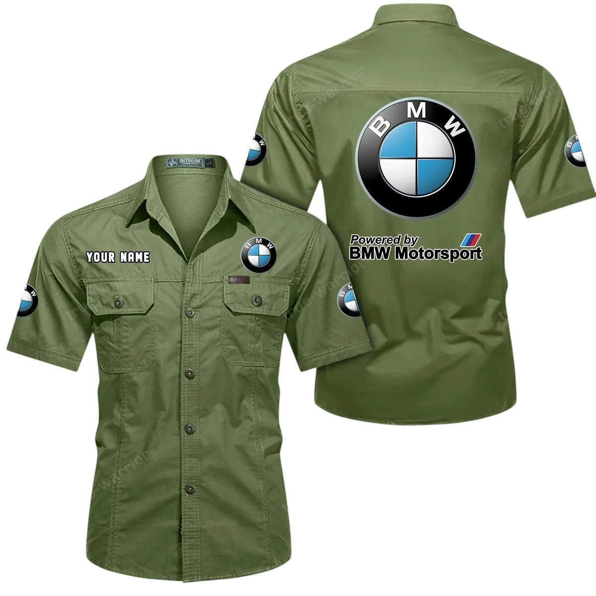 BMW Motorsport Short Sleeved Shirt, All Over Print Button Shirt CAR444052625807 - Army Green