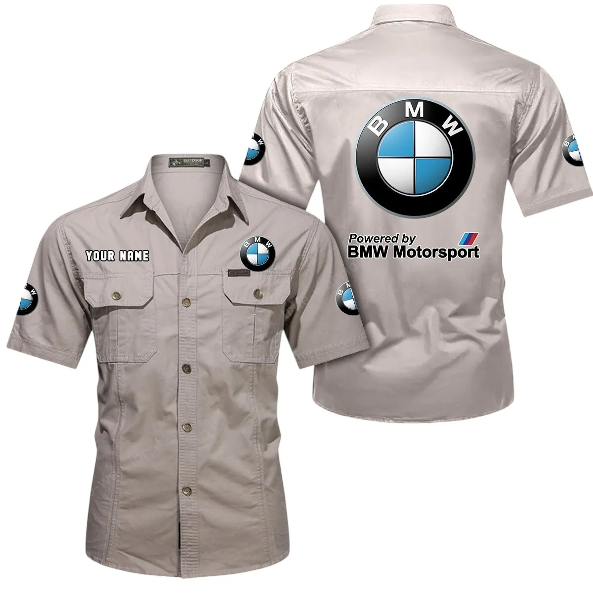 BMW Motorsport Short Sleeved Shirt, All Over Print Button Shirt CAR444052625807 – Beige