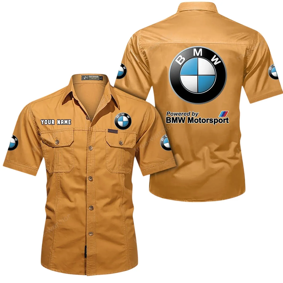 BMW Motorsport Short Sleeved Shirt, All Over Print Button Shirt CAR444052625807 - Turmeric