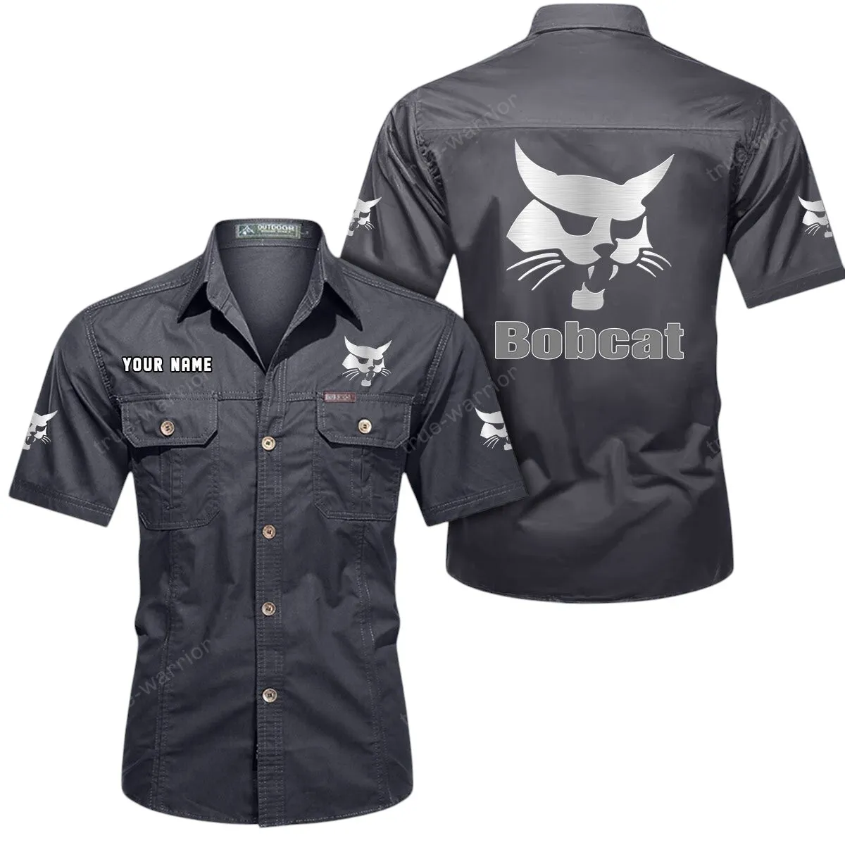 Bobcat Short Sleeved Shirt, All Over Print Button Shirt CAR444052625876 – Gray