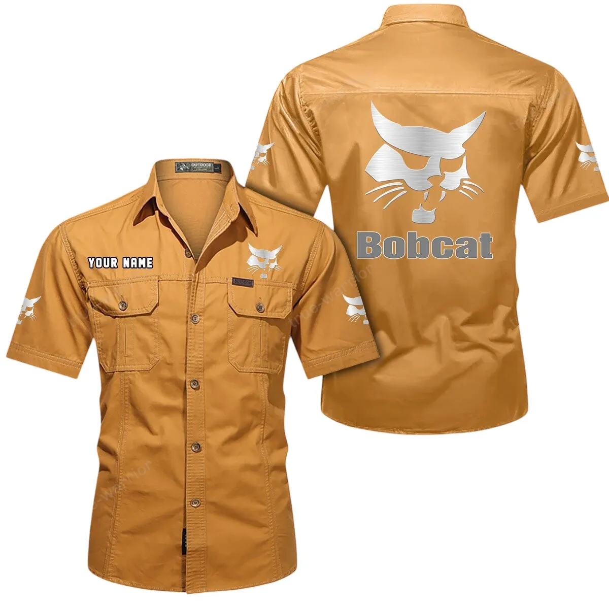 Bobcat Short Sleeved Shirt, All Over Print Button Shirt CAR444052625876 - Khaki