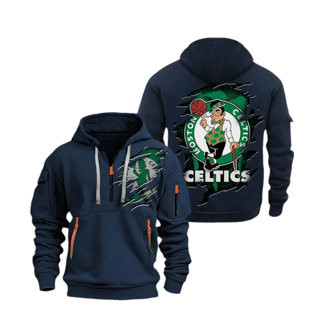 Boston Celtics Hoodie Half Zipper NBA04172024473, NBA Sports All Over Print Hoodie Half Zipper