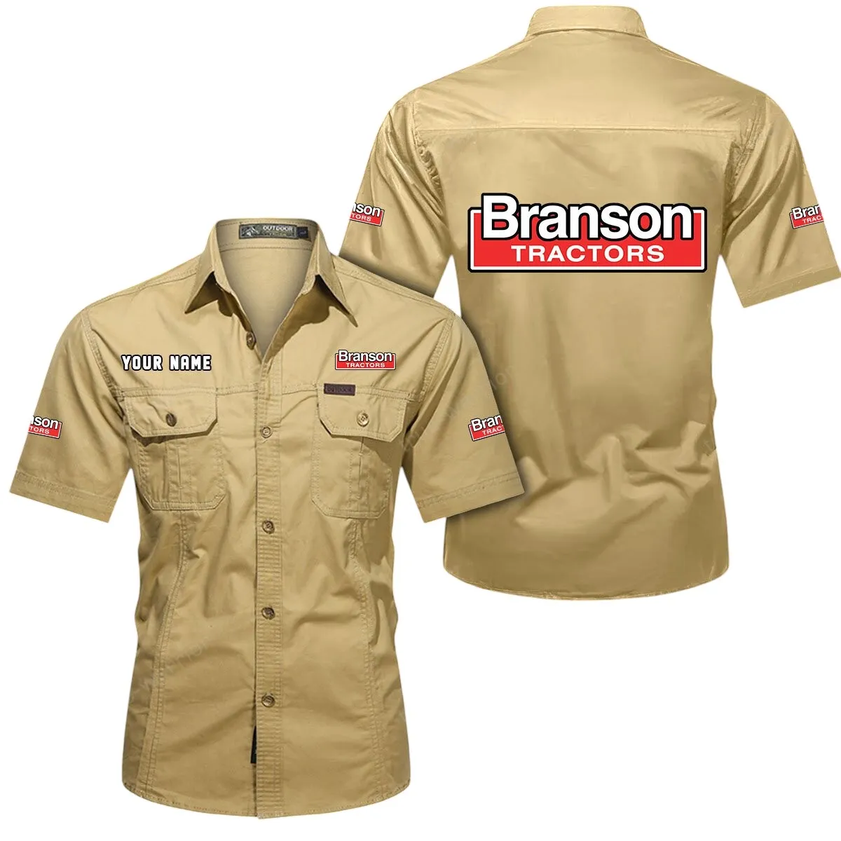 Branson Short Sleeved Shirt, All Over Print Button Shirt CAR444052625892 - Khaki