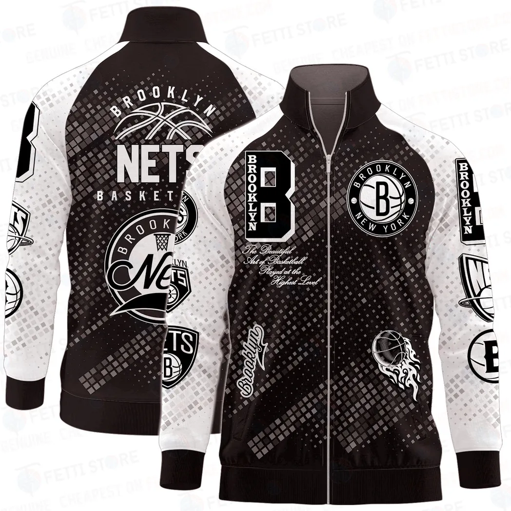 BROOKLYN NETS Stand Collar Jacket NBA13212024310, NBA Sports All Over Print Stand Collar Jacket