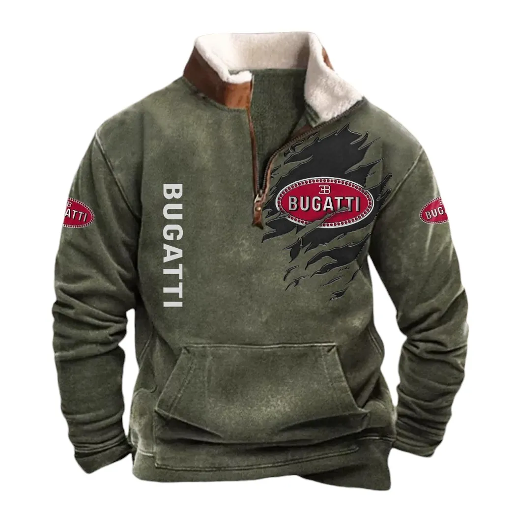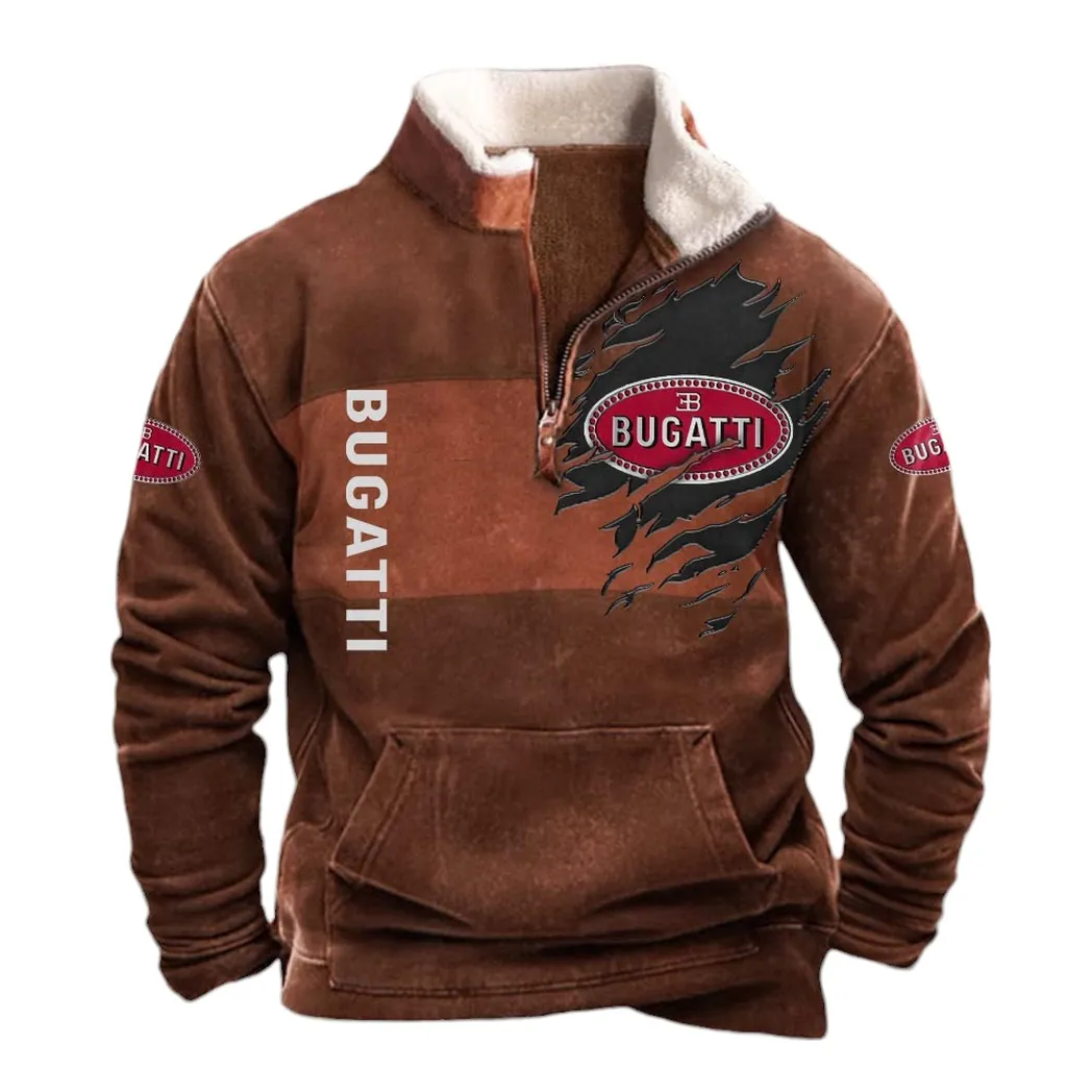 Bugatti Half Zip Fur Collar Hoodie CAR0926092050, All Over Print Half Zip Fur Collar Hoodie