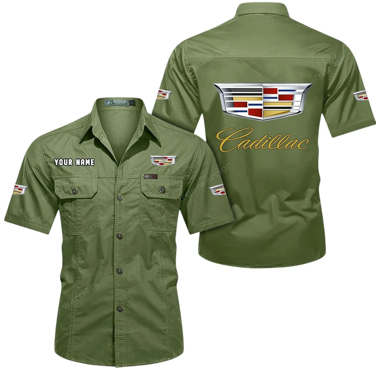 Cadillac Short Sleeved Shirt, All Over Print Button Shirt CAR444052625816 - Army Green