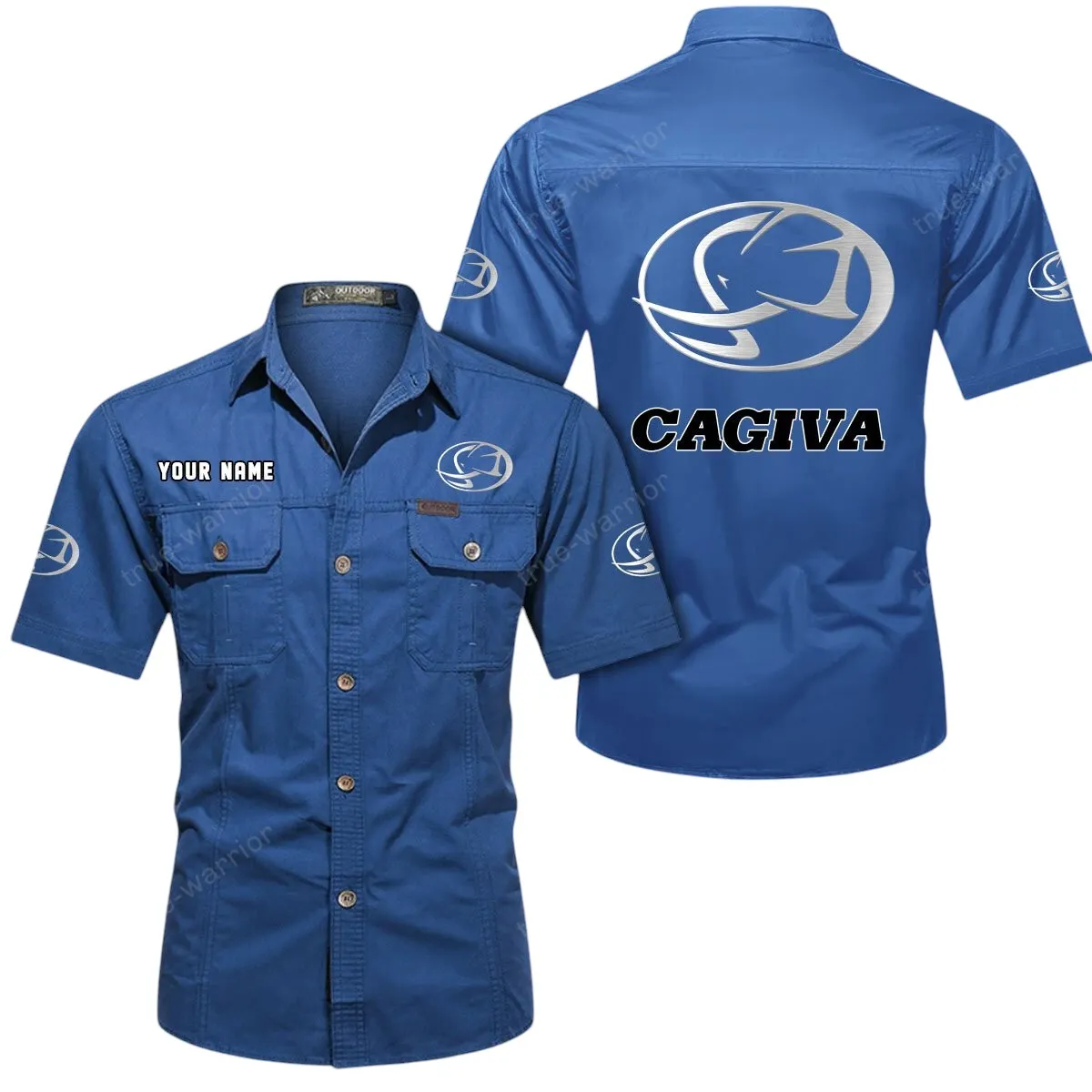 Cagiva Motorcycles Short Sleeved Shirt, All Over Print Button Shirt CAR444052625819 - Khaki