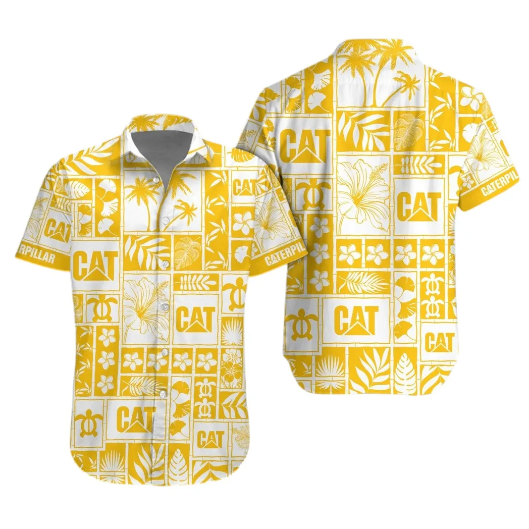 Performance-Inspired Hawaiian Shirt for Caterpillar Fans – Lightweight, Breathable & Built for Garage Days or Cruise Nights