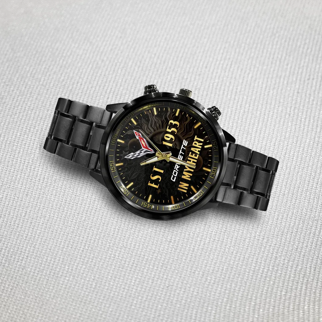 Chevrolet Corvette Enthusiast Stainless Steel Watch Black – Precision, Performance & Automotive Style