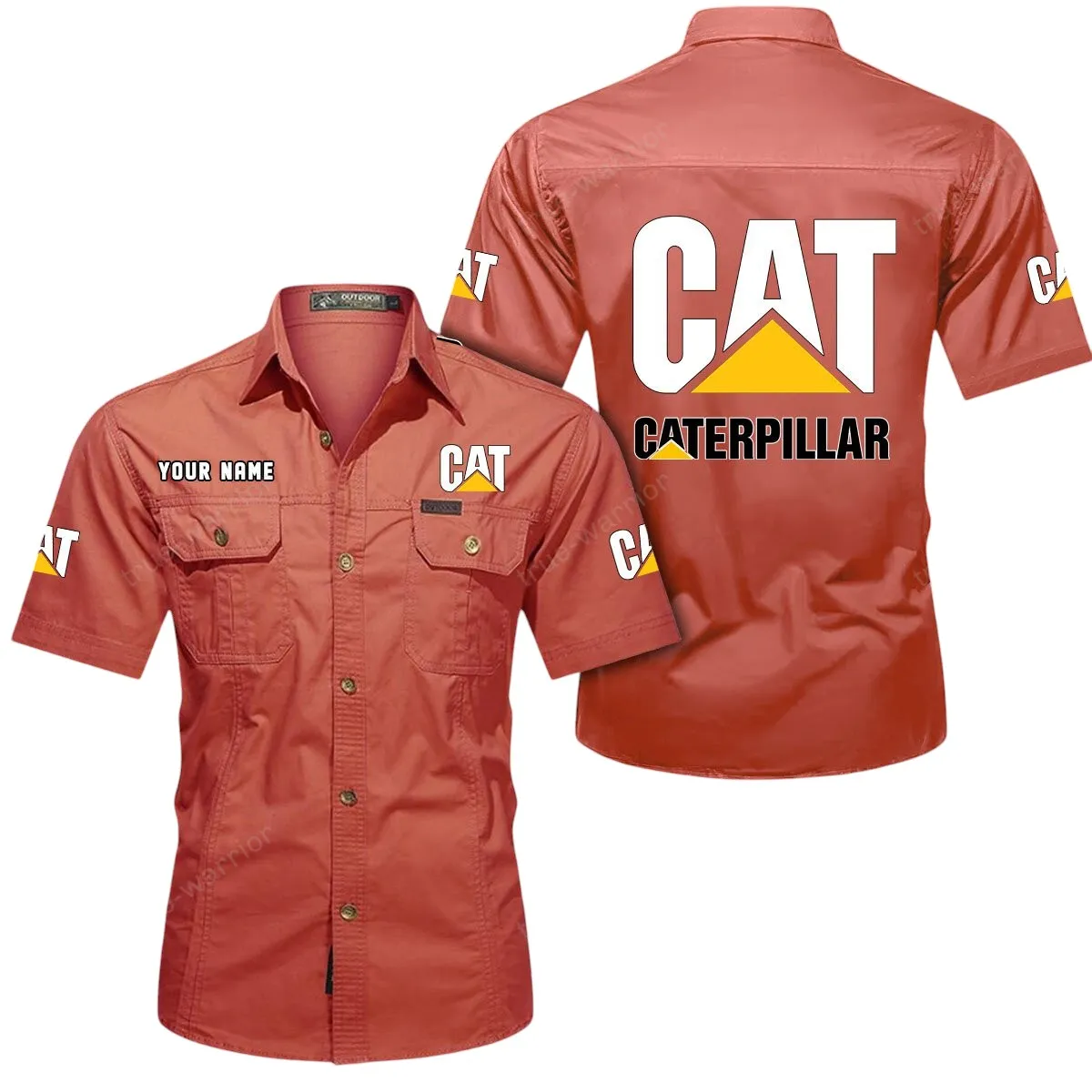 Caterpillar Inc Short Sleeved Shirt, All Over Print Button Shirt CAR444052625883 – Red