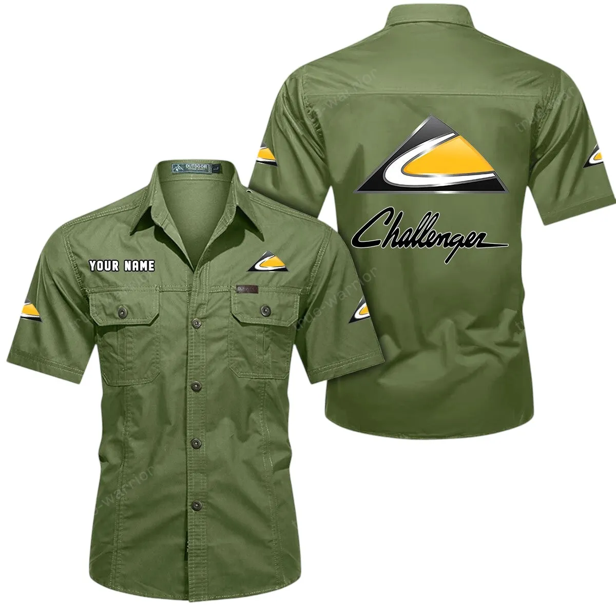Challenger Short Sleeved Shirt, All Over Print Button Shirt CAR444052625941 - Army Green
