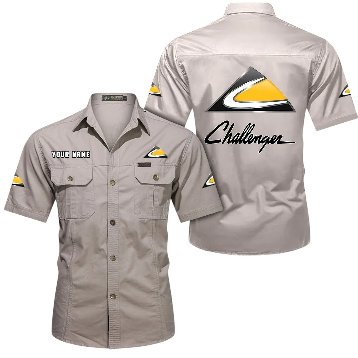 Challenger Short Sleeved Shirt, All Over Print Button Shirt CAR444052625941 – Beige