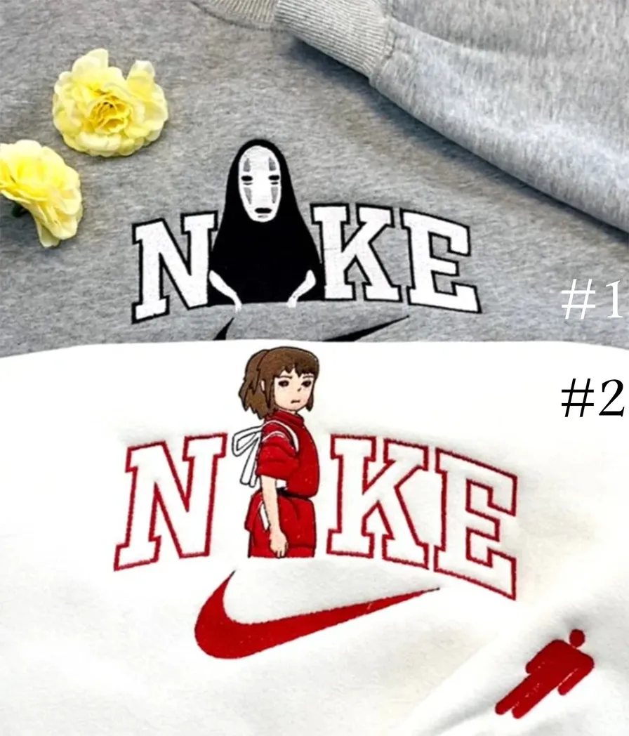 Chihiro And No Face Spirited Away Studio Ghibli x Nike Embroidered Sweatshirt Fashion Style For Couples, Valentines Gift For Him/Her