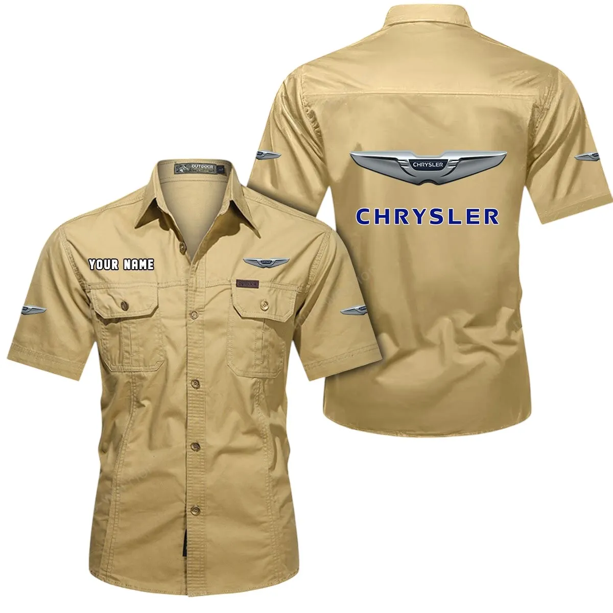 Chrysler Short Sleeved Shirt, All Over Print Button Shirt CAR444052625887 - Khaki