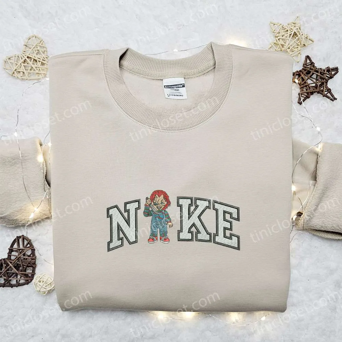 Chucky Laurel Wreath x Nike Christmas Embroidered Sweatshirt, Cartoon Christmas Embroidered Shirt, Best Christmas Gift Ideas
