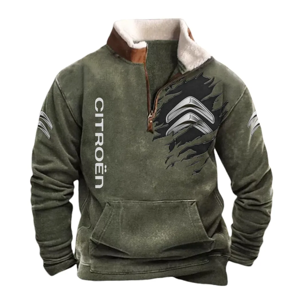 Citroen Half Zip Fur Collar Hoodie CAR0926092032, All Over Print Half Zip Fur Collar Hoodie