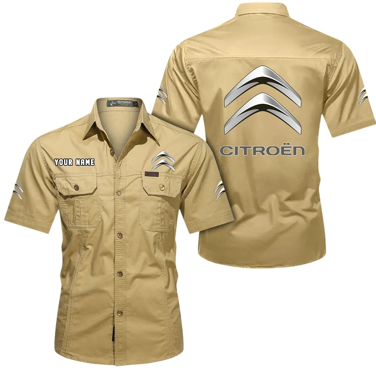 Citroen Short Sleeved Shirt, All Over Print Button Shirt CAR444052625959 – Khaki