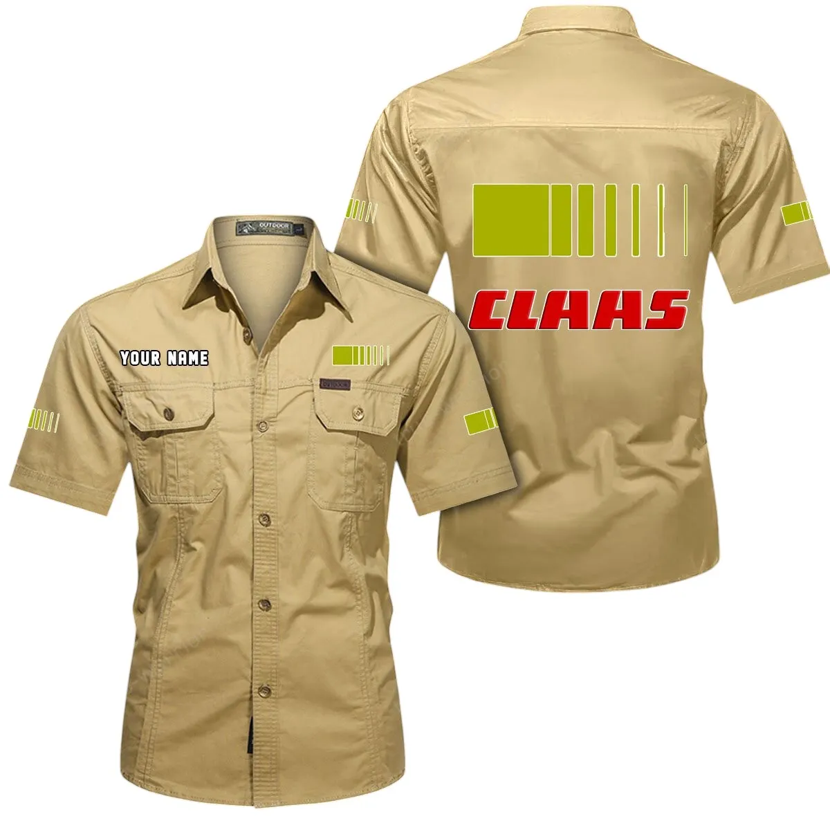 Claas Short Sleeved Shirt, All Over Print Button Shirt CAR444052625961 - Khaki
