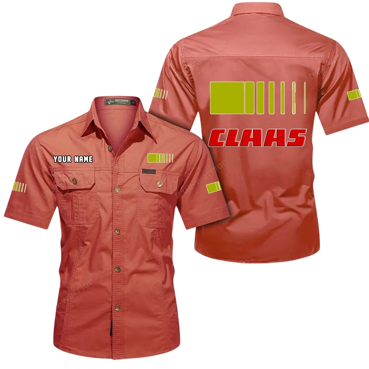 Claas Short Sleeved Shirt, All Over Print Button Shirt CAR444052625961 - Army Green