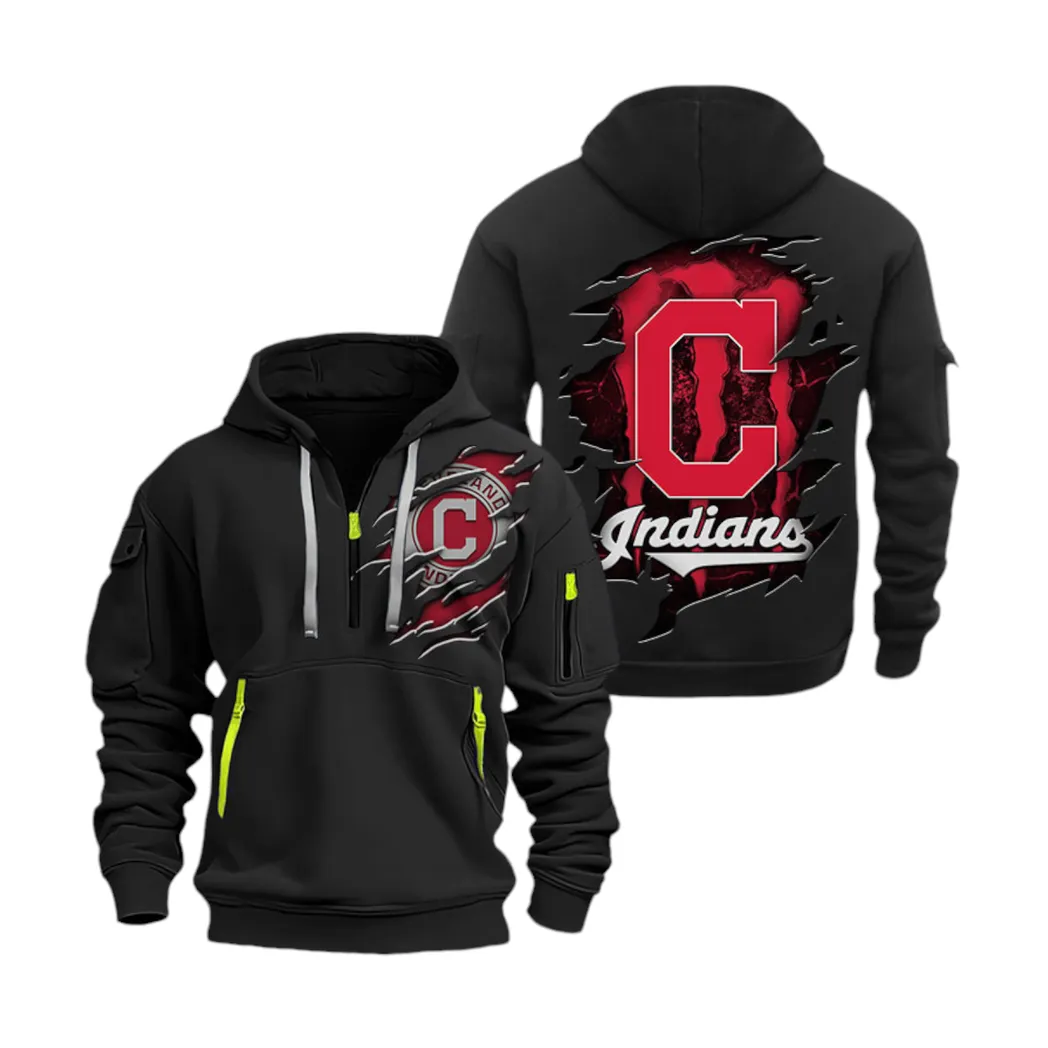 Cleveland Indians Hoodie Half Zip MLB5010012075, MLB Sports All Over Print Hoodie Half Zip