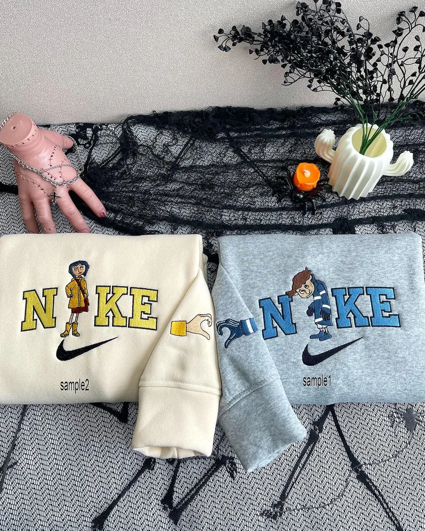 Coraline And Wybie x Nike Embroidered Sweatshirt Fashion Style For Couples, Valentines Gift For Him/Her
