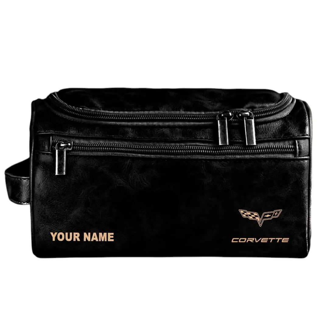 Corvette c6 Leather Toiletry Bag, All Over Print Leather Toiletry Bag - Red Brown CAR44005072508