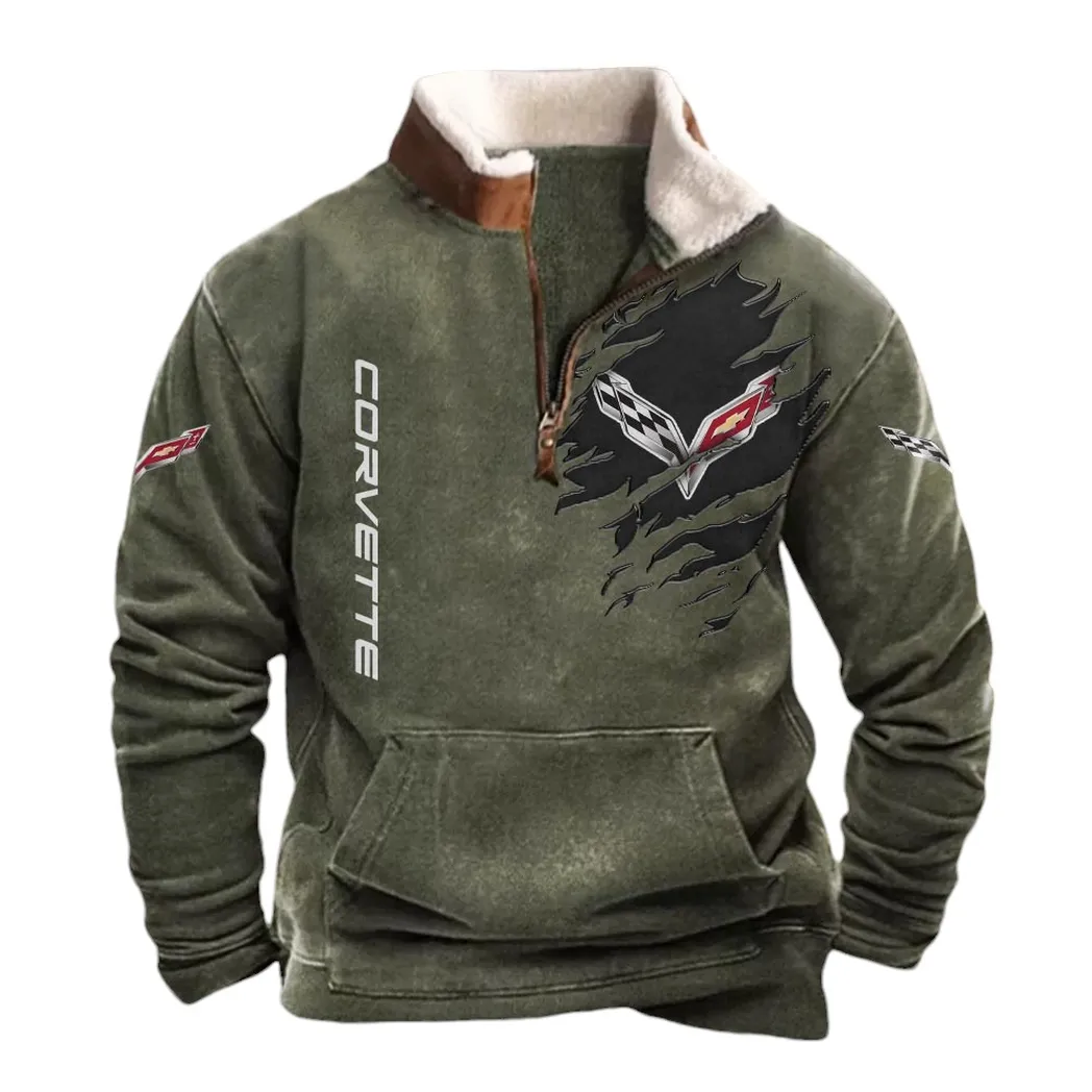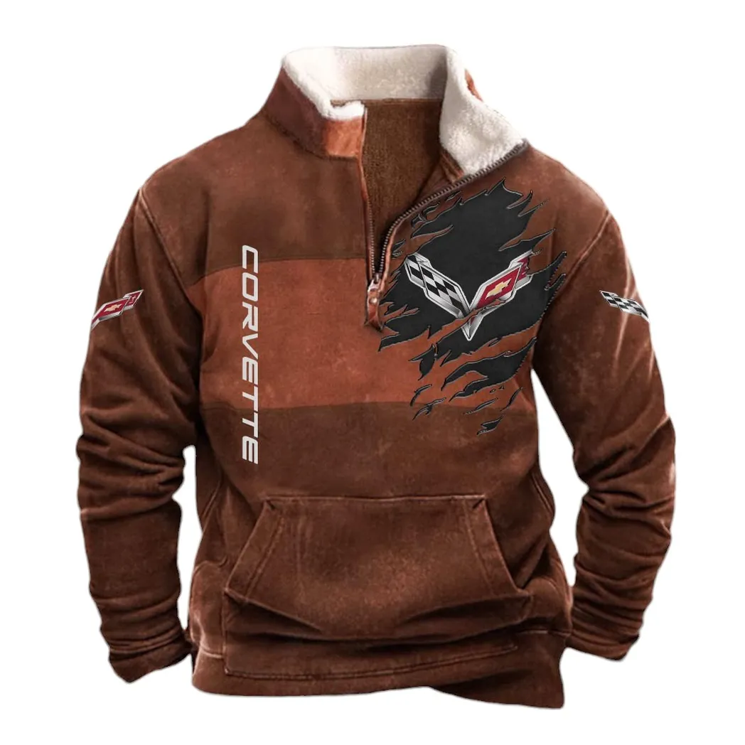 Corvette Old Half Zip Fur Collar Hoodie CAR0926092024, All Over Print Half Zip Fur Collar Hoodie